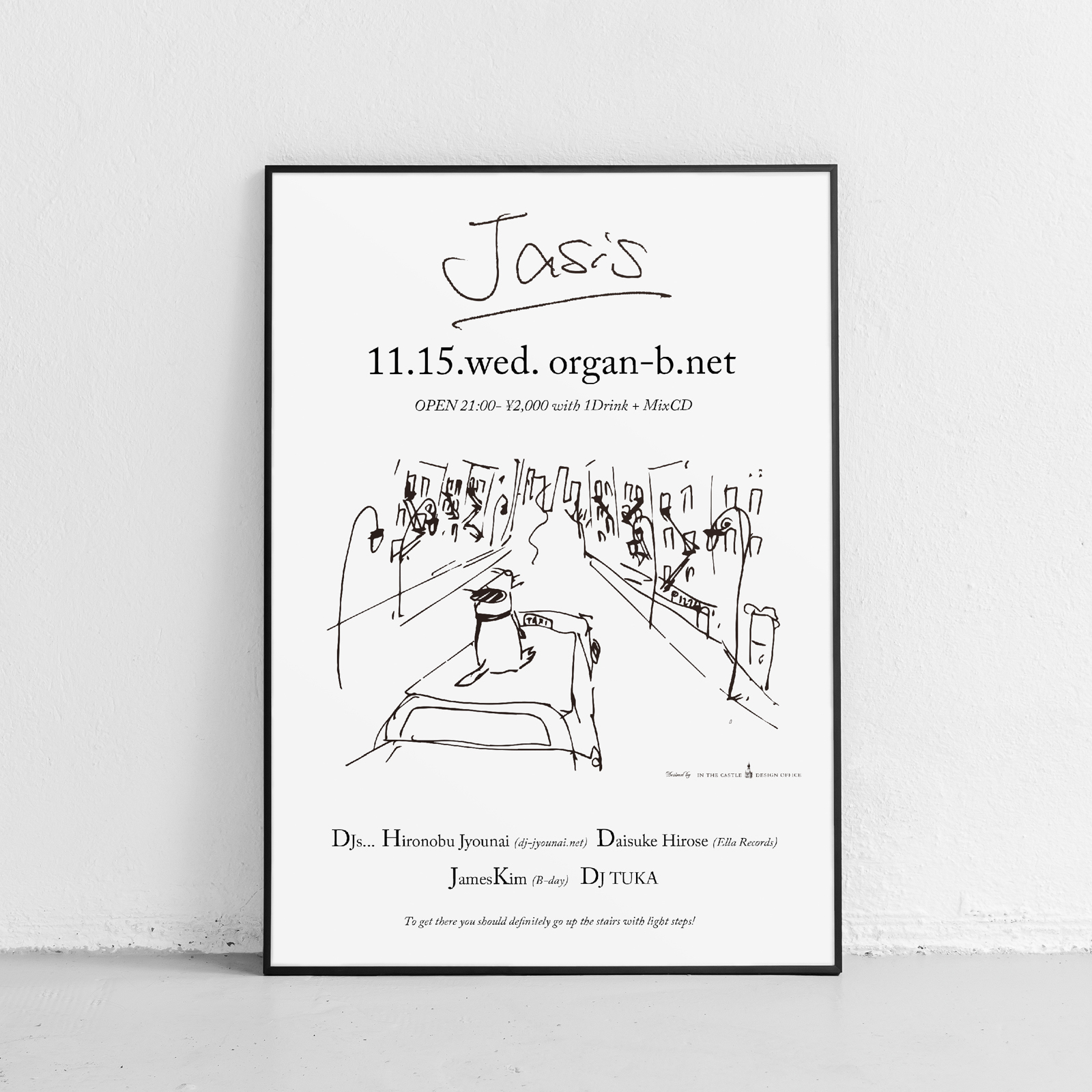 To get there you should definitely go up the stairs with light steps! organ-b.net // 11.15.wed.Jasis // DJs: Hironobu Jyounai(dj-jyounai.net), Daisuke Hirose(Ella Records), JamesKim( B-day), DJ Tuka // OPEN 21:00- ¥2000-1D