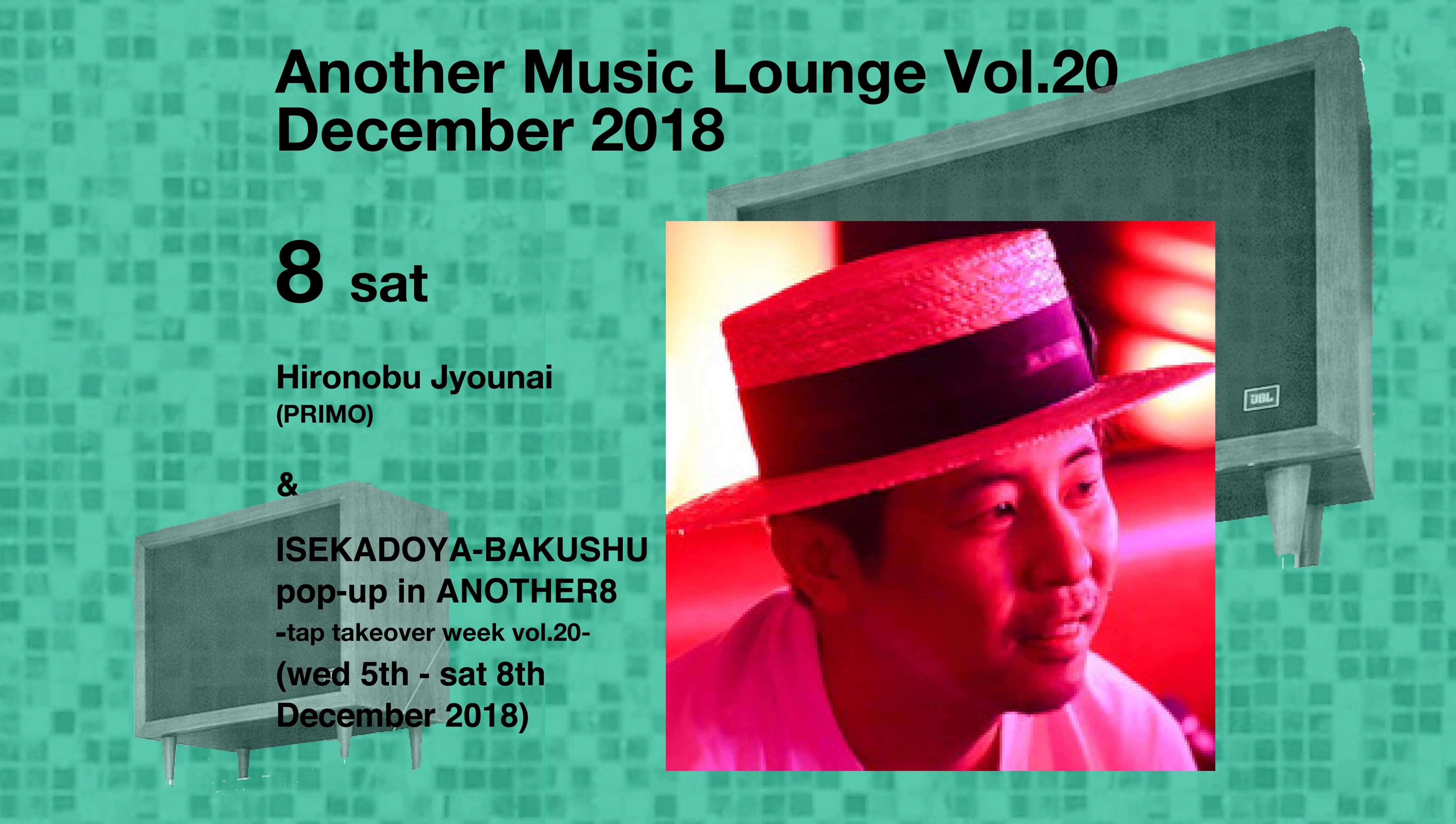 12.8.sat ANOTHER MUSIC LOUNGE vol.20 // DJ : Hironobu Jyounai(dj-jyoiunai.net) // Open 17:00-25:00 Dj Time 19:00-23:00 Entrance FREE! // Enjoy DJ music! In addition to craftbeer 8tap (Tap take over event Vol.26: Ise Kadoya Bakusyu), ANOTHER’s craft sake(8 bottles) and event special food. We are waiting for your visit!! // ANOTHER8 : 4-minutes walk from MEGURO station. Yokokawa bldg. 1F 1-2-18, Shimomeguro Meguro-ku Tokyo 153-0064 Tel.03-6417-9158
