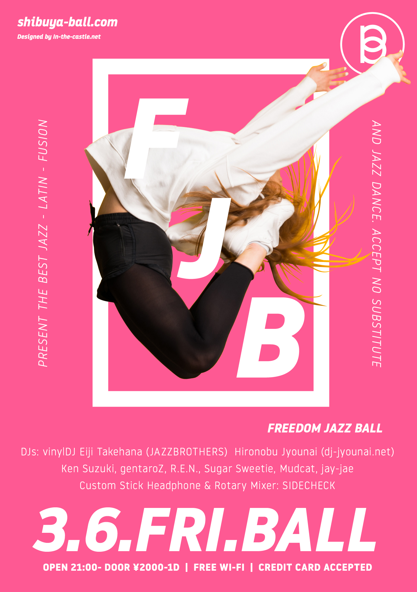 3.6.fri FJB // DJs: vinylDJ 竹花英二(Jazzbrothers), 城内宏信(dj-jyounai.net), 鈴木顕, gentaroZ, Maneyan, R.E.N., Sugar Sweetie, Mudcat, jay-jae // Stick Headphone & Rotary Mixer: Sidecheck(stickheadphone.com) // OPEN 21:00- ¥2000/1D // shibuya-ball.com