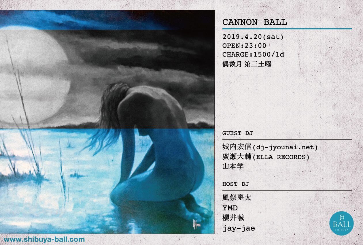 4.20.sat CANNON BALL // GUEST DJ : 城内宏信(dj-jyounai.net), 廣瀬大輔(ELLA RECORDS), 山本学 // HOST DJ : 風祭堅太, YMD, 櫻井誠, jay-jae // OPEN:23:00 ¥1500-1d // http://shibuya-ball.com