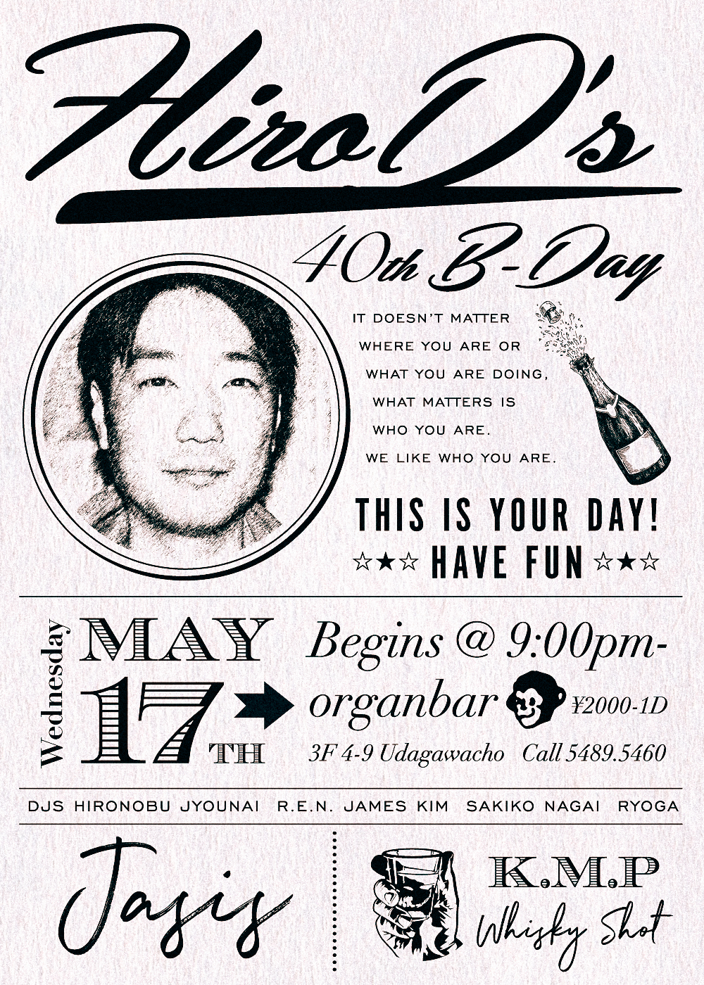 5.17.wed.Jasis -HIROD’S 40th B-DAY- // DJs: Daisuke Hirose(Ella Records), Hironobu Jyounai(dj-jyounai.net), R.E.N., James Kim,Sakiko Nagai, Ryoga // OPEN 21:00- ¥2000 // organ-b.net