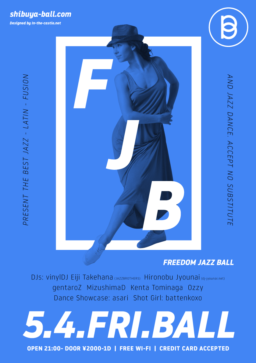 5.4.fri. FJB -Freedom Jazz Ball- // DJs: vinyl DJ Eiji Takehana (Jazzbrothers), Hironobu Jyounai (dj-jyounai.net), Endo Takeshi, MizushimaD, gentaroZ, Yasuyuki Nakagawa, Kenta Tominaga, Ozzy // Dance Showcase: asari // Shot Girl: battenkoxo // Food: Chicken Yamamoto // OPEN 21:00- ¥2000/1D // Free Wi-Fi. Credit Card Accepted. //