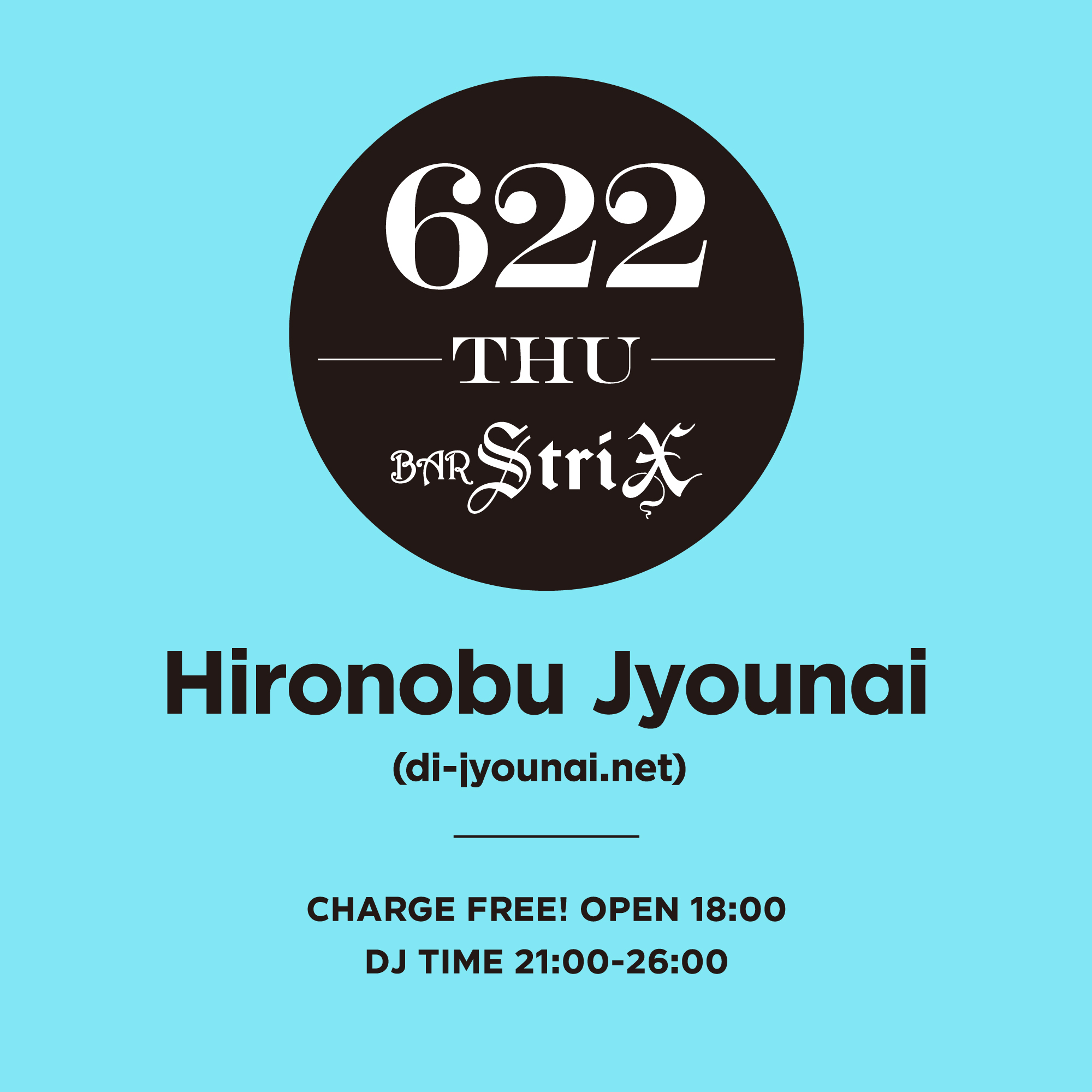 第四木曜は西麻布BarStriXにて21:00-26:00を一人で幅広く選曲。カウンター向かいにDJブースがありますのでお一人でもふらっと寄って下さい。チャージフリー 。