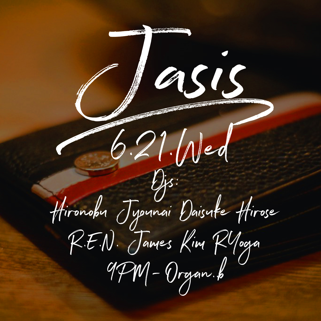 6.21.wed.Jasis // DJs: Hironobu Jyounai(dj-jyounai.net), Daisuke Hirose(Ella Records), R.E.N., James Kim,Sakiko Nagai, Ryoga // OPEN 21:00- ¥2000 // organ-b.net