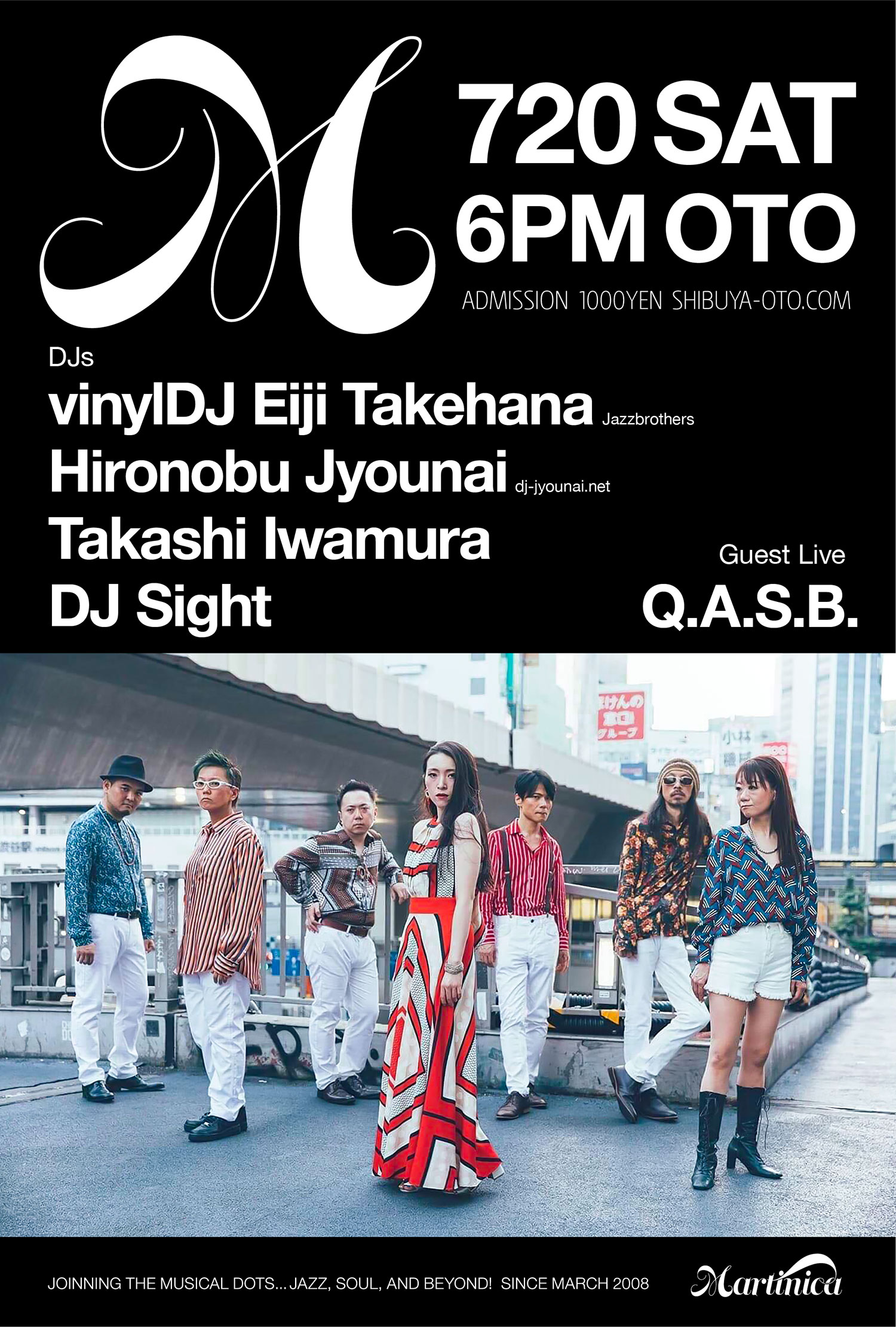 7.20.sat Martinica // Guest Live: Q.A.S.B. : a.yu.mi.(Vo) Masamichi Ishikawa(Key) Yama(Gt) Shiori “Shelly” Tabata(Ba) Sachi Nakasaki(Ds) Echigo(Tp) Yuzo “Uzo” Kitano(Ts) Makiko Sugiyama(Tb) Akito Sutou(Per) // DJs: vinylDJ Eiji Takehana(Jazzbrothers), Hironobu Jyounai(dj-jyounai.net), Takashi Iwamura, DJ Sight // OPEN 18:00-23:00 ¥1000-NoD // shibuya-oto.com