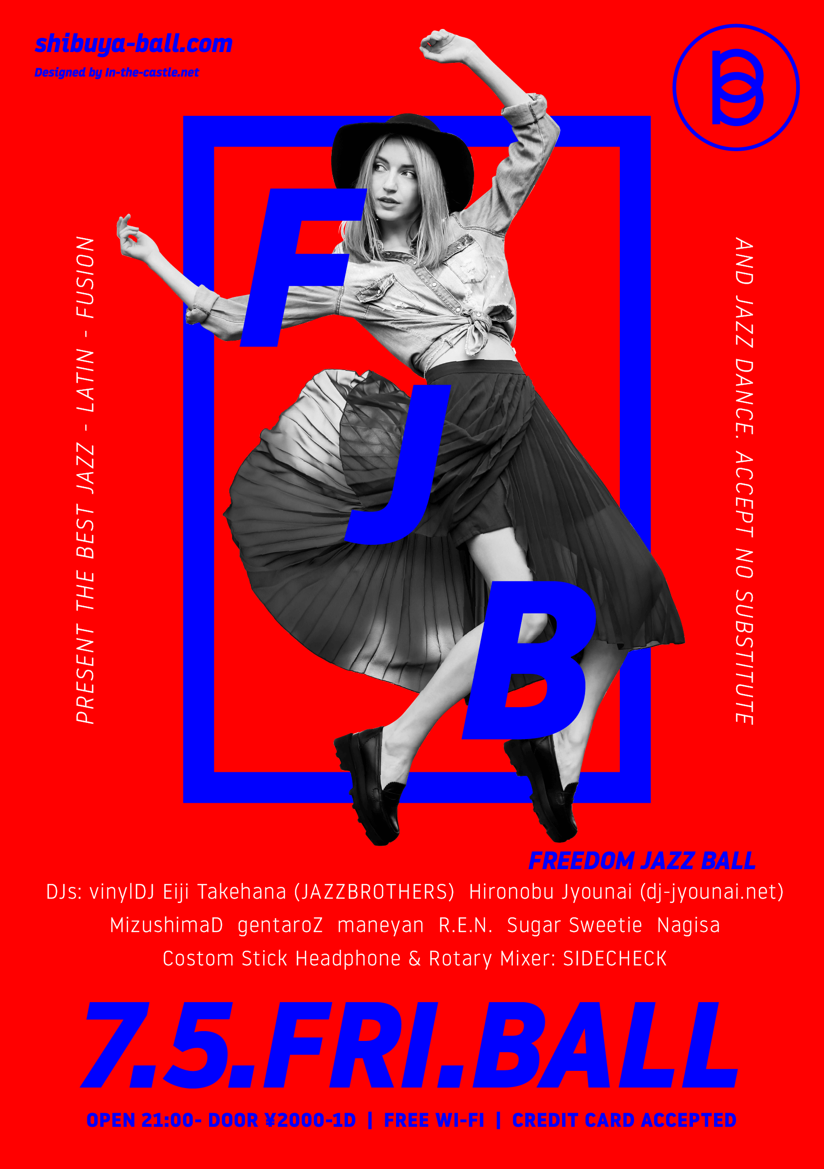 7.5.fri // FJB -Freedom Jazz Ball- // DJs: vinylDJ Eiji Takehana (Jazzbrothers), Hironobu Jyounai (dj-jyounai.net), MizushimaD, gentaroZ, maneyan, R.E.N., Sugar Sweetie, Nagisa // Custom Stick Headphone & Rotary Mixer: Sidecheck(stickheadphone.com) // OPEN 21:00- ¥2000/1D // 23rd Anniversary! shibuya-ball.com