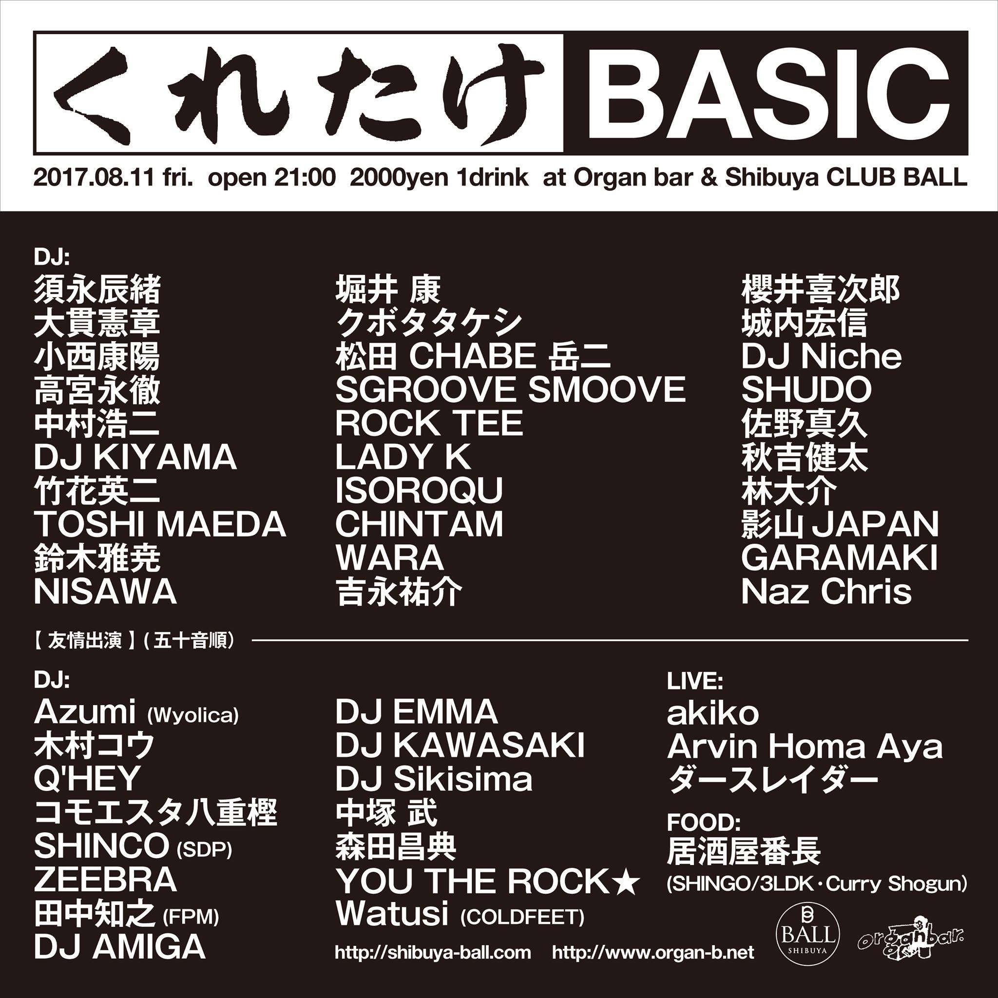 渋谷区宇田川町にある「くれたけビル」3Fのオルガンバー、及び4FのShibuya Club BALLにて、8月11日(金)に合同開催されるパーティ「くれたけBASIC」についてご紹介致します。