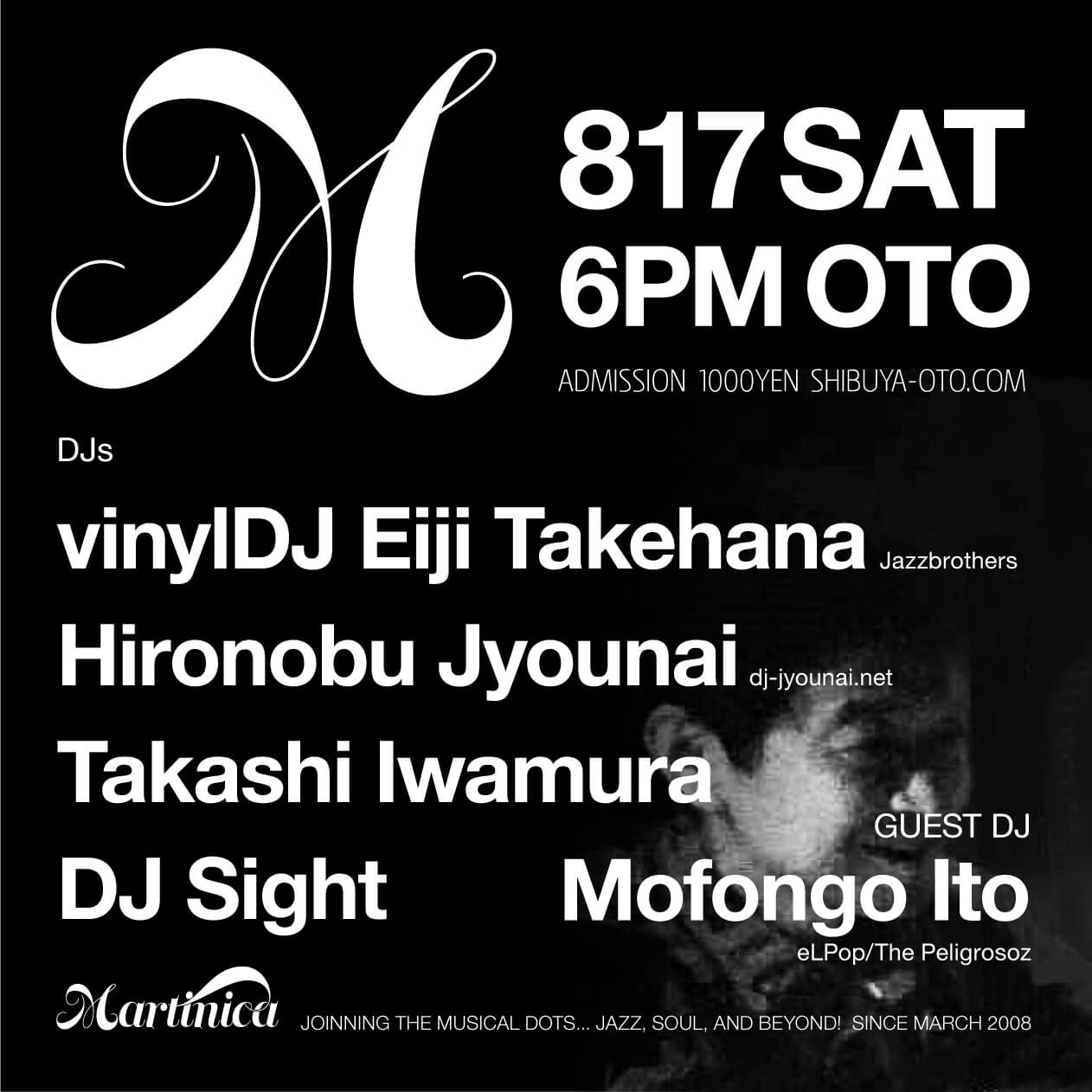 8.17.sat Martinica // Guest DJ: Mofongo Ito // DJs: vinylDJ Eiji Takehana(Jazzbrothers), Hironobu Jyounai(dj-jyounai.net), Takashi Iwamura, DJ Sight // OPEN 18:00-23:00 ¥1000-NoD // shibuya-oto.com