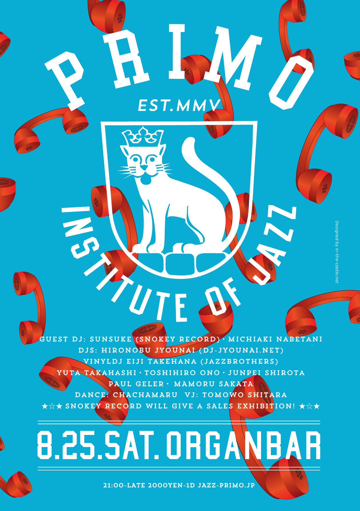 8.25.sat PRIMO // Guest DJ: Sunsuke(Snokey Record) & Michiaki Nabetani // DJs: Hironobu Jyounai(dj-jyounai.net), vinylDJ Eiji Takehana(Jazzbrothers), Yuta Takahashi, Toshihiro Ono, Junpei Shirota, Paul Geler, Mamoru Sakata // DANCE : Chachamaru // VJ: Tomowo Shitara // Snokey Record will give s sales exhibition! // OPEN 21:00 ¥2000-1D // To get there you should definitely go up the stairs with light steps!