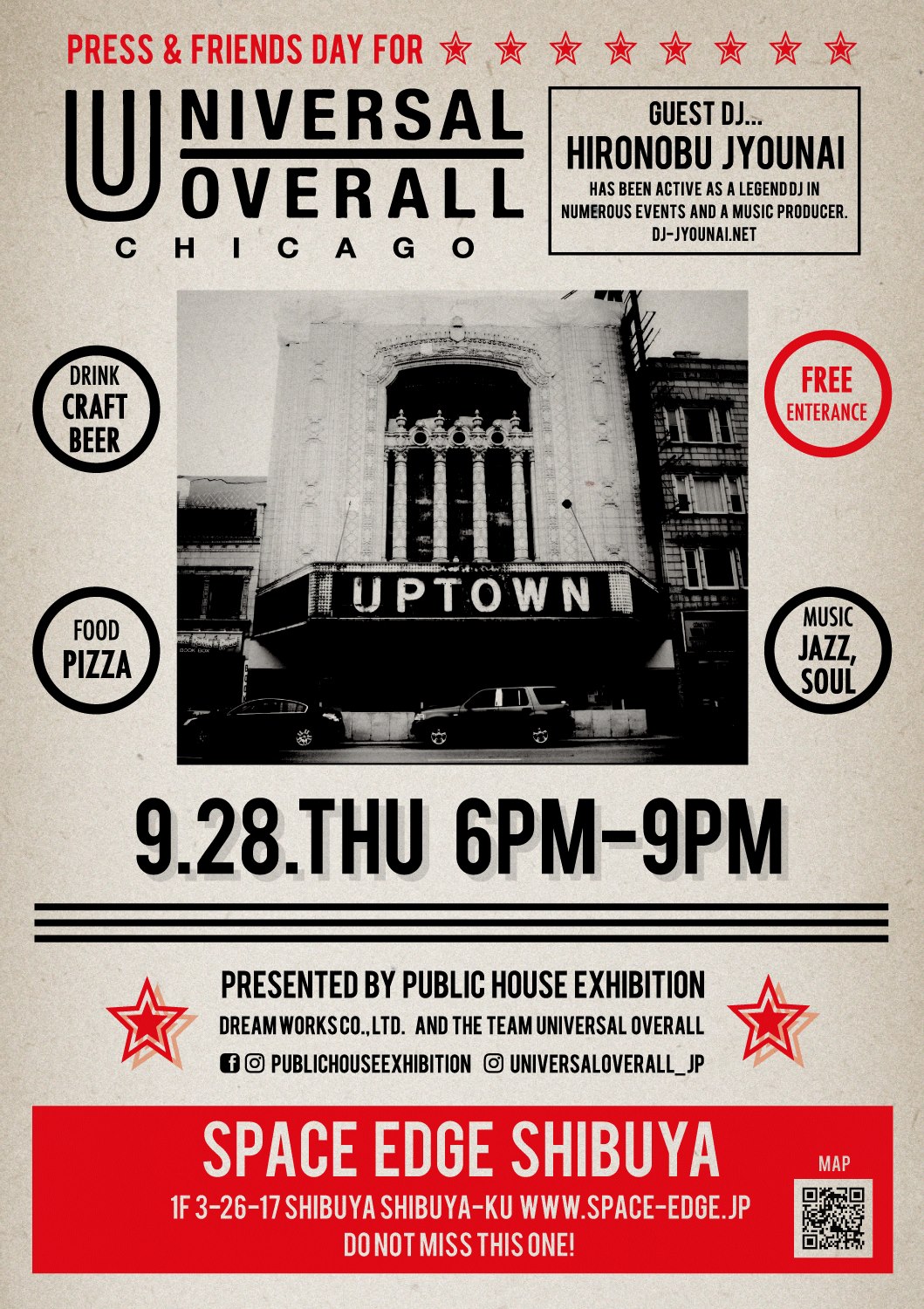 カバーオールなどの無骨なメンズアイテムだけでなく、近年は女子向けなサロペットやワイドパンツなどの日本向け別注も豊富に手がけるシカゴの老舗リアルワークウエアブランド「UNIVERSAL OVERALL」2018S/S展示会のアフターパーティー。