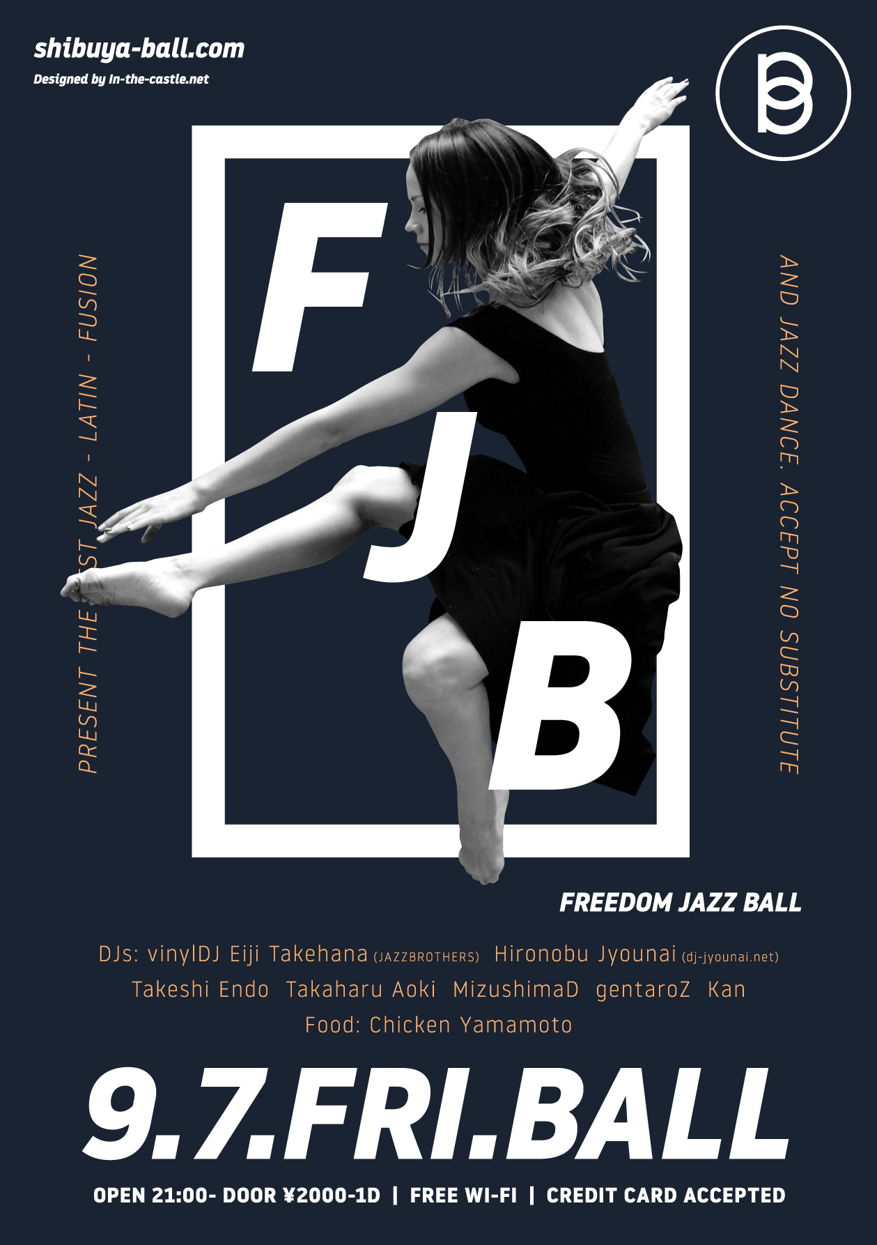 FJB -Freedom Jazz Ball- // DJs: vinyl DJ Eiji Takehana (Jazzbrothers), Hironobu Jyounai (dj-jyounai.net), Takeshi Endo, Takaharu Aoki, MizushimaD, gentaroZ, Kan // Food: