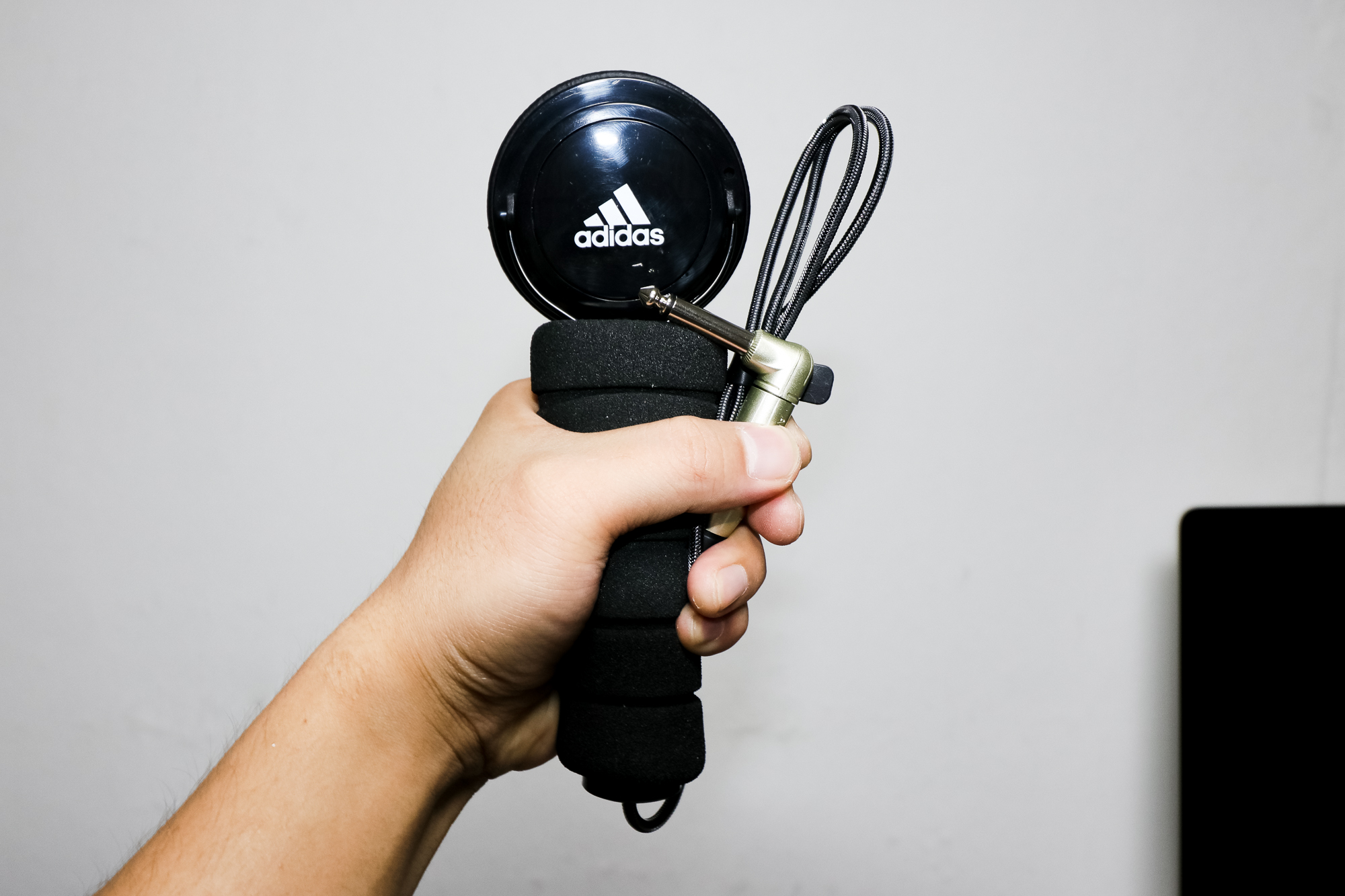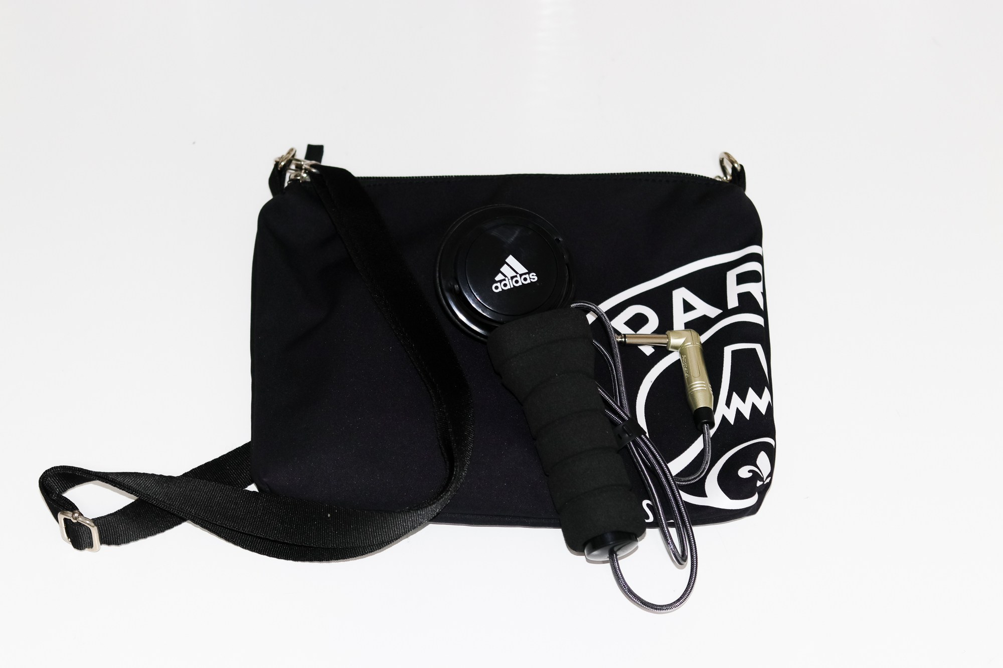 アディダスのノベルティ用ヘッドフォンでミニサイズのスティックヘッドフォンを制作。小さいですがちゃんと使えます。スポーツイベントでのDJに使いたいと思います。